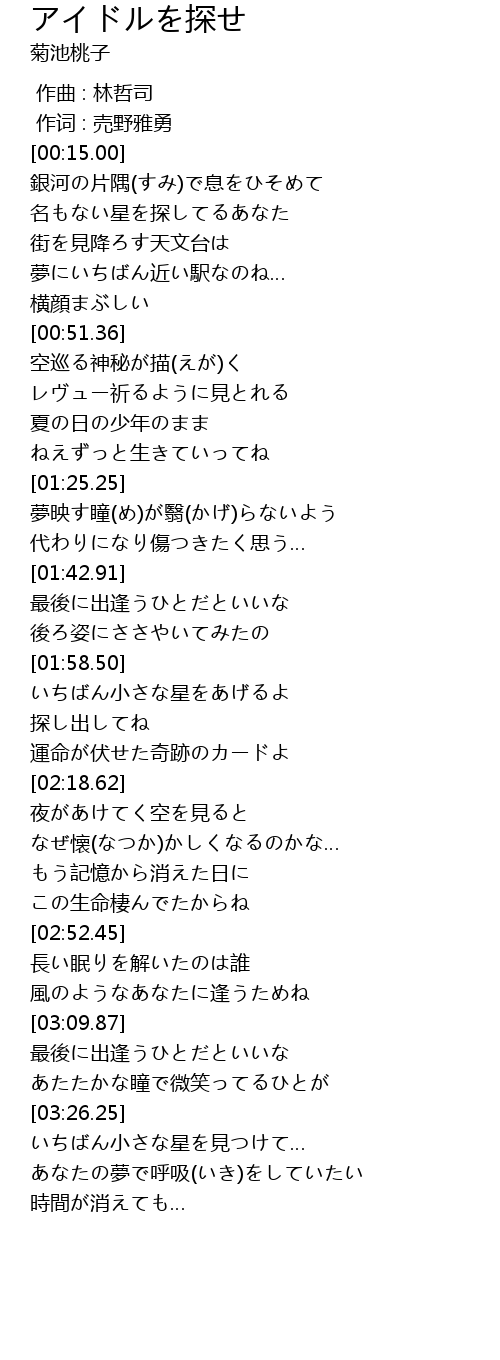 | [00:24.49] | 名もない星を探してるあなた |