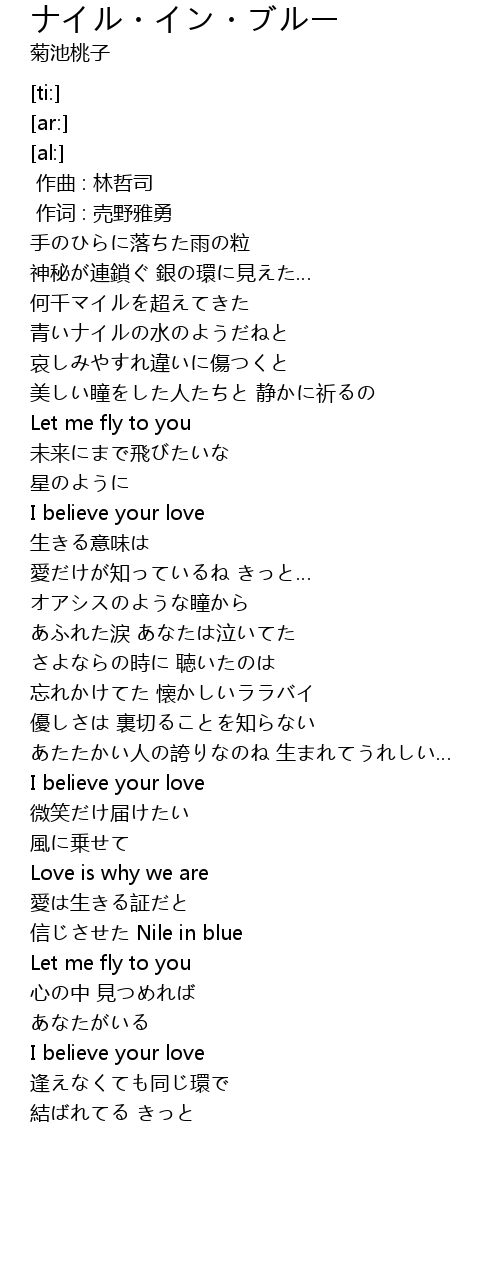 | [02:22.47] | あたたかい人の誇りなのね 生まれてうれしい… |