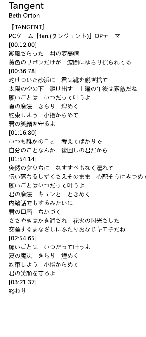 | [00:03.00] | PCゲーム「tan.(タンジェント)」OPテーマ |