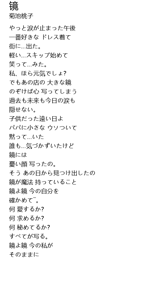| [03:02.518] | 鏡よ鏡 今の私が |