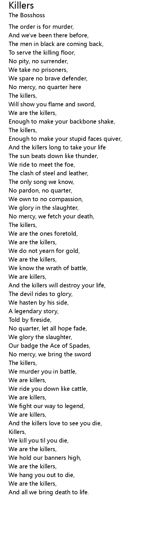 We are killers, |