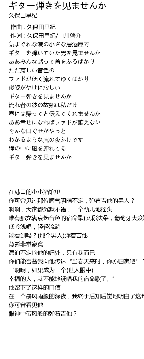 | [00:29.50] | ギターを弾いていた男を見ませんか |