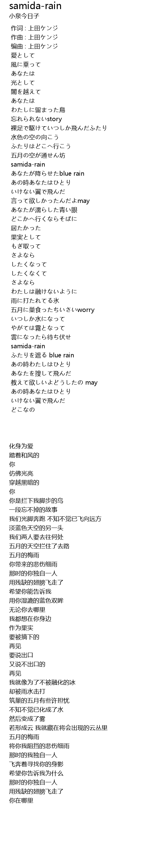 你带来的悲伤细雨 |