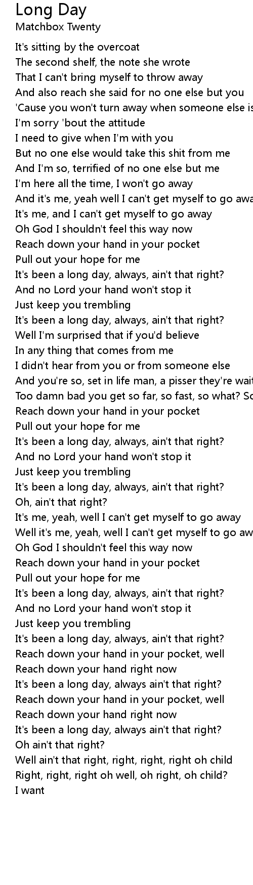 It's been a long day, always ain't that right? |