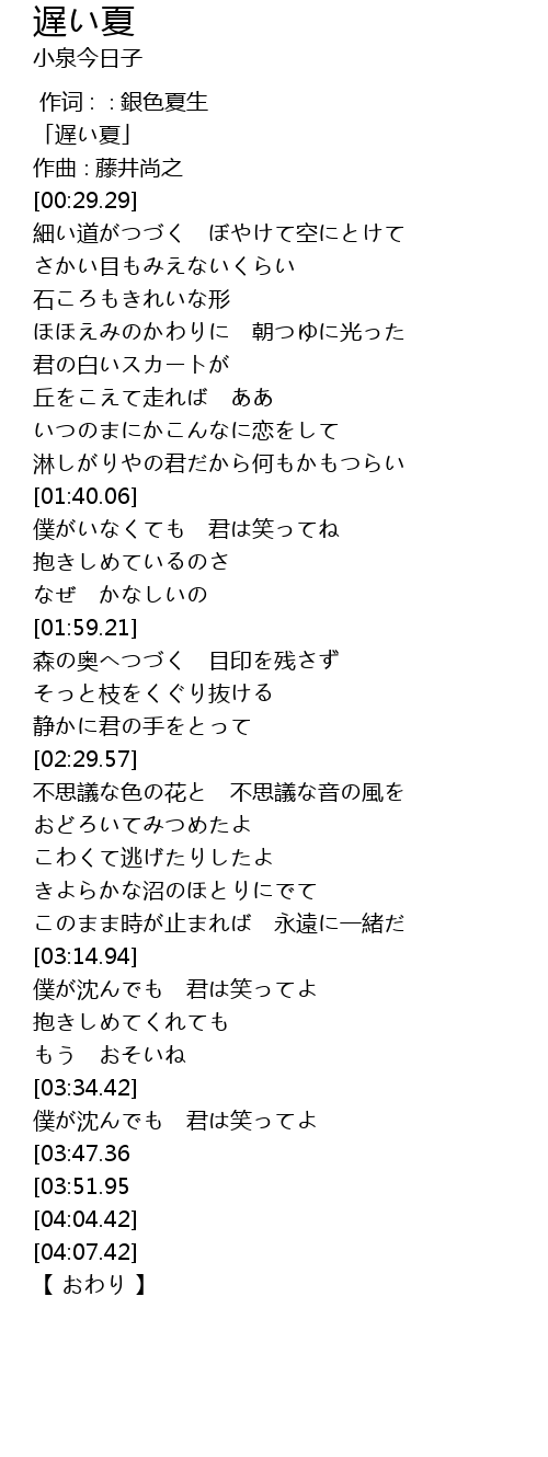 | [00:01.29] | 「遅い夏」 |