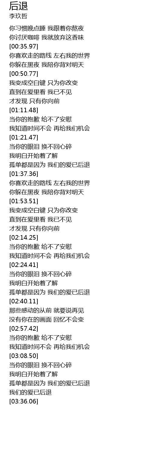 | [02:32.36] | 孤单都是因为 我们的爱已后退 |