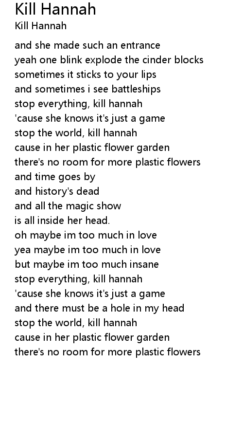 stop the world, kill hannah |