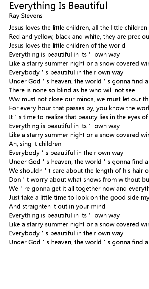 | Everything is beautiful in its' own way | |