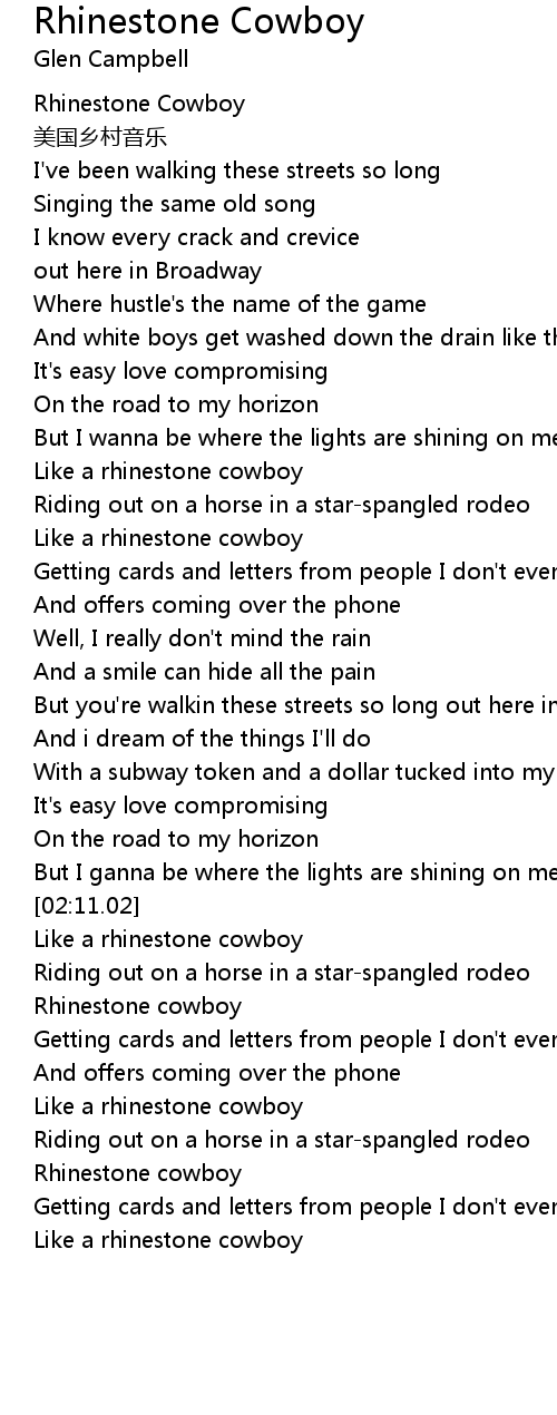 | [02:59.68] | Rhinestone cowboy |