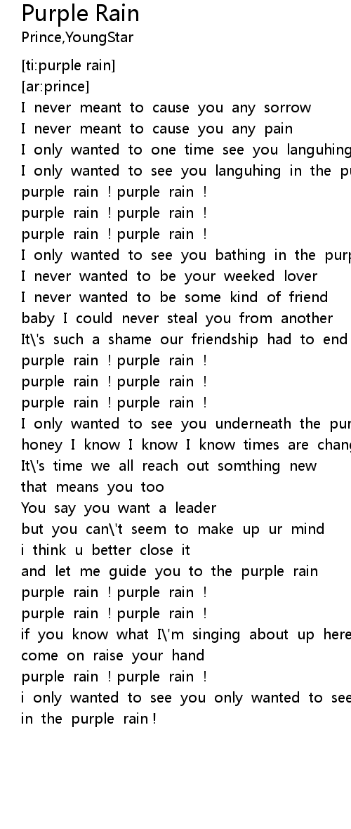 | [02:27.732] | I only wanted to see you underneath the purple rain ! |