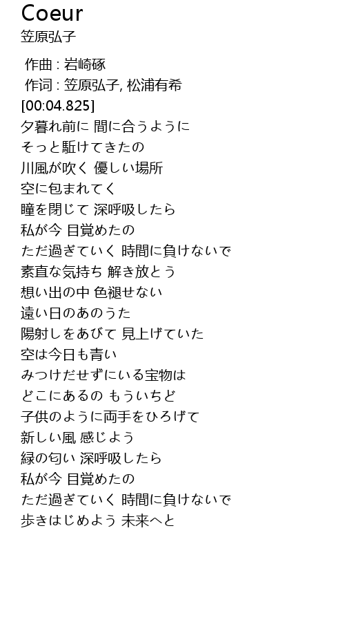 [00:01.000] 作词 : 笠原弘子, 松浦有希