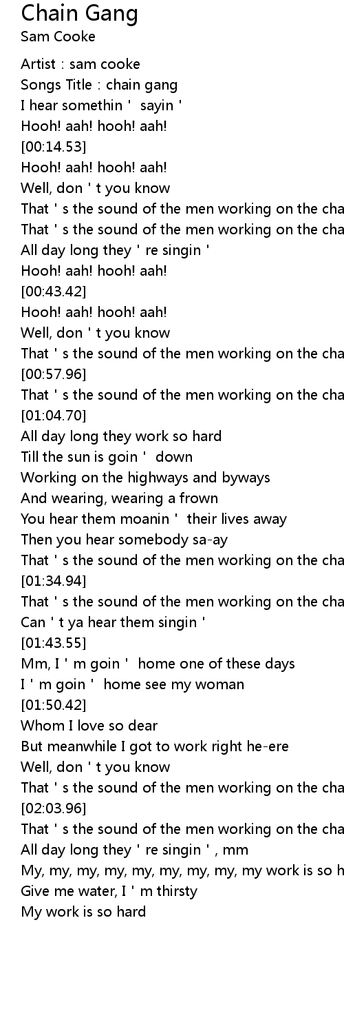 | [00:52.29] | That s the sound of the men working on the chain gaaang |