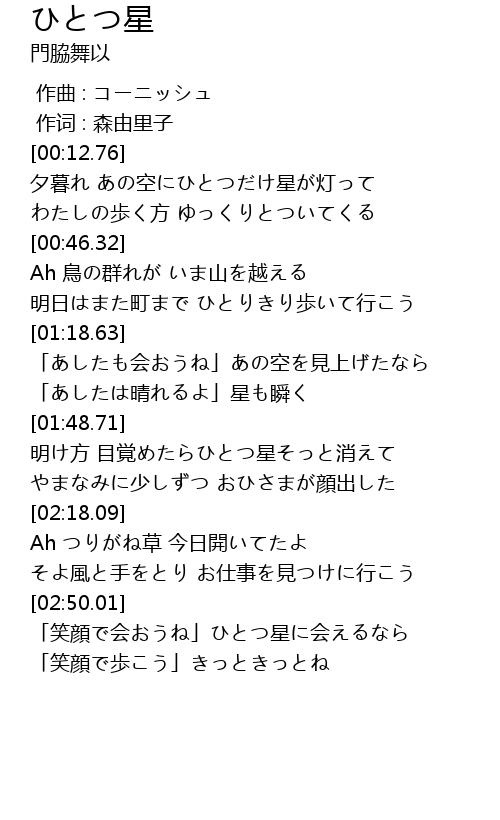 | [02:53.50] | 「笑顔で会おうね」ひとつ星に会えるなら |