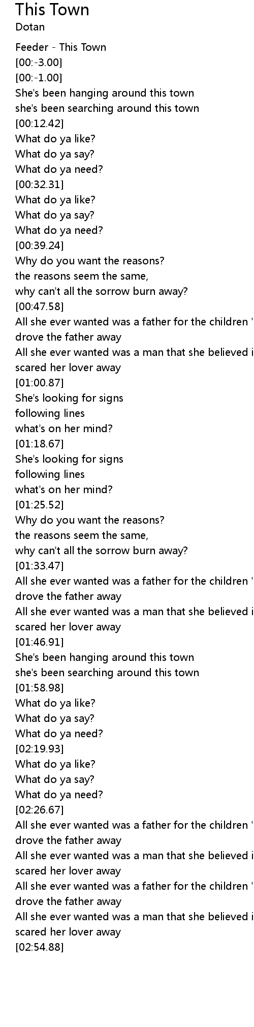 [01:34.38] All she ever wanted was a father for the children 'cause the children drove the father away