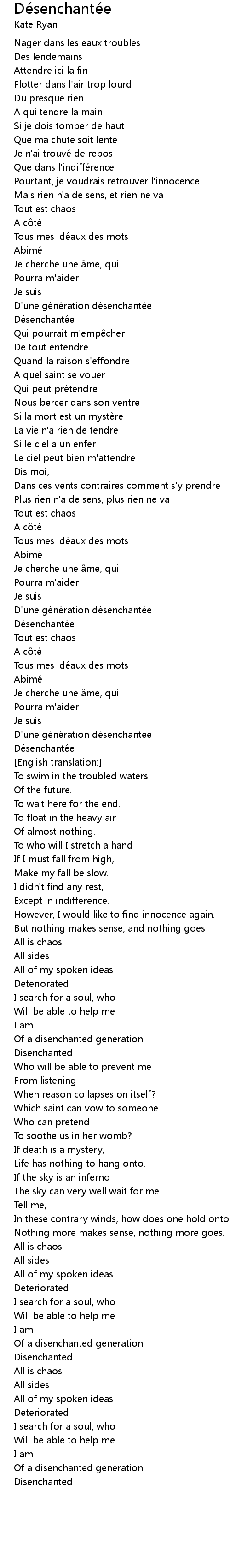 | 歌曲 | Désenchantée |