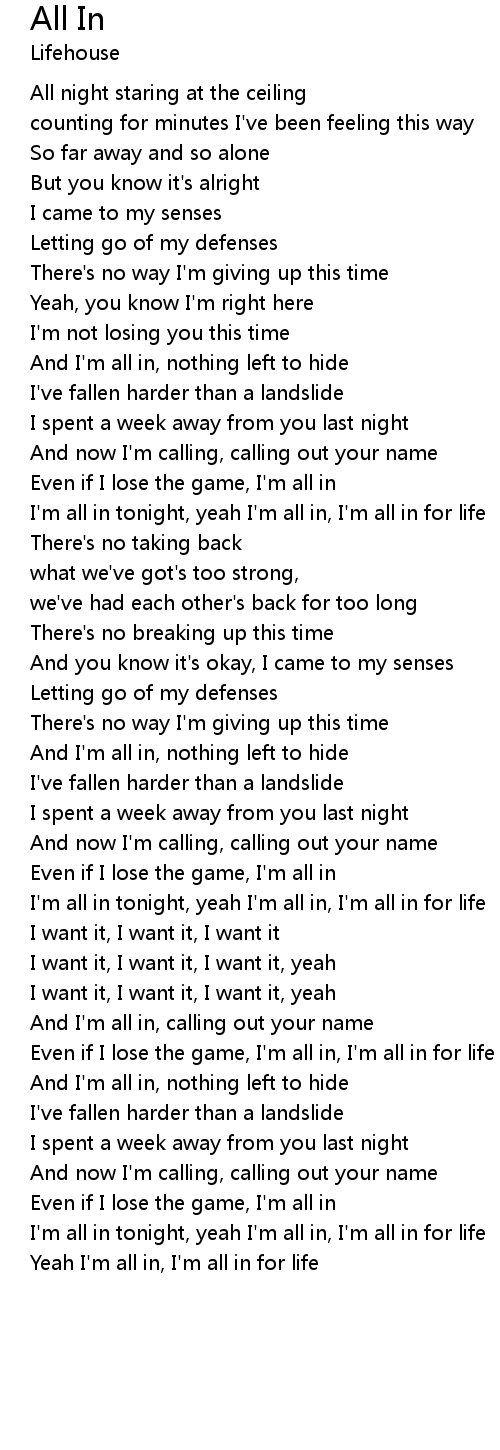 Even if I lose the game, I'm all in, I'm all in for life |