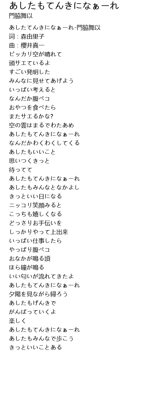 | [00:00.252] | あしたてんきになぁーれ-門脇舞以 |