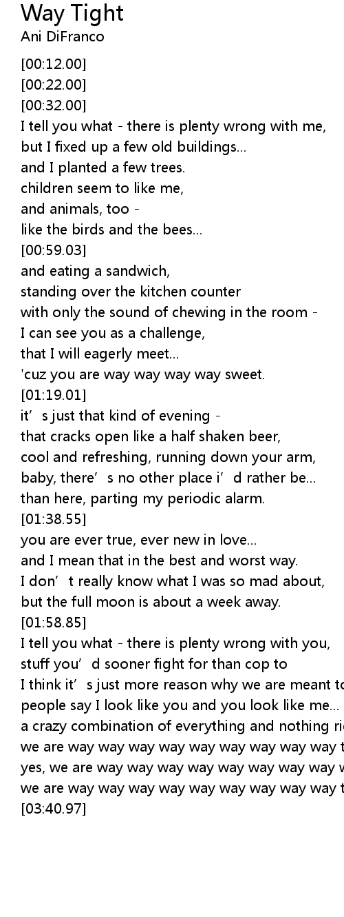 | [03:07.70] | we are way way way way way way way way way tight, |