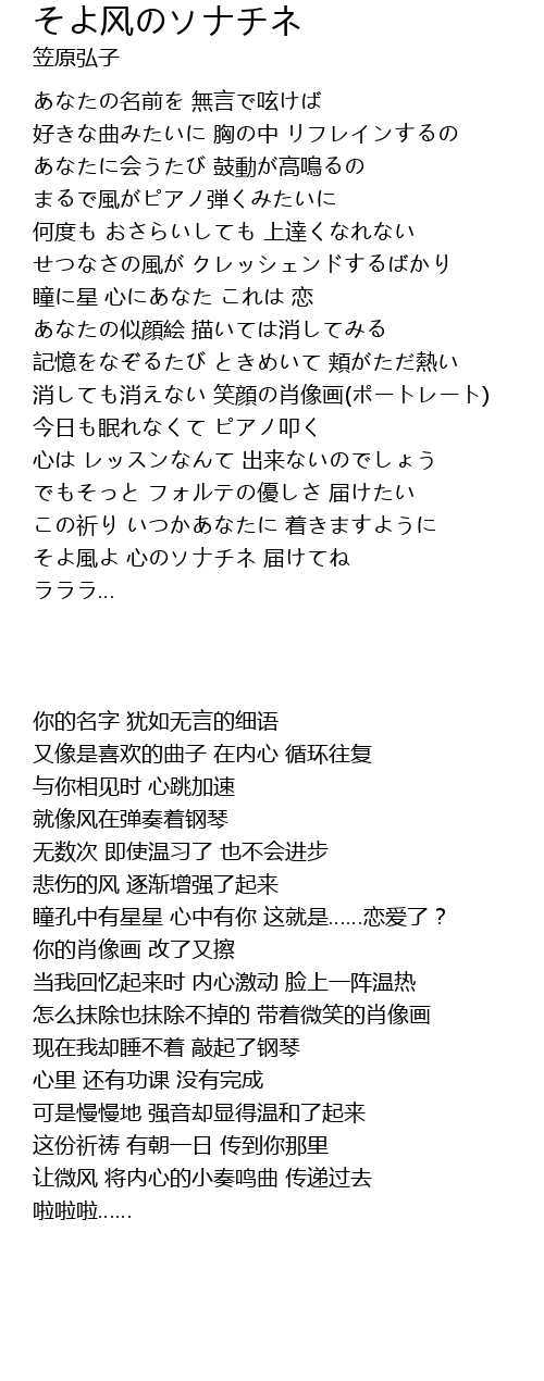 | [03:10.83] | そよ風よ 心のソナチネ 届けてね |