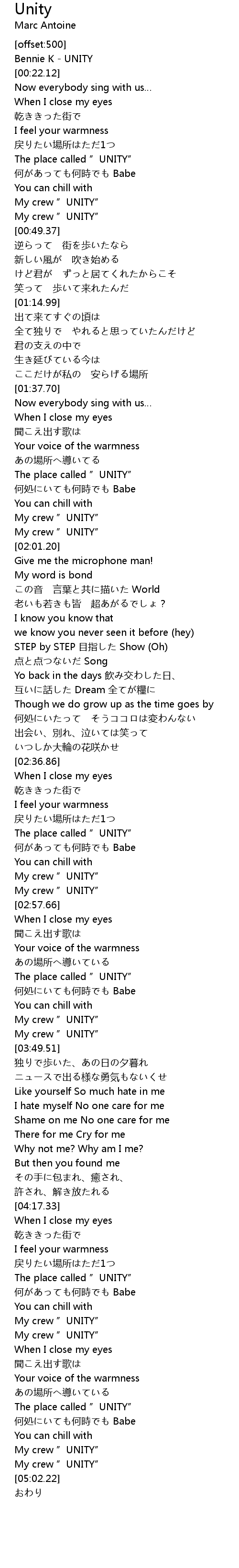 | [04:51.36] | The place called " UNITY" |