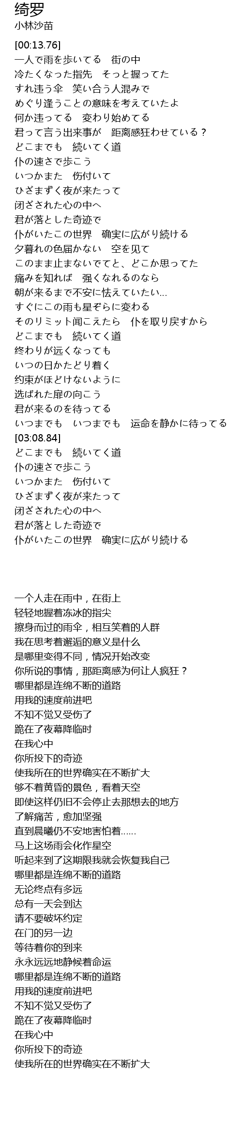 | [02:53.05] | いつまでも いつまでも 运命を静かに待ってる |
