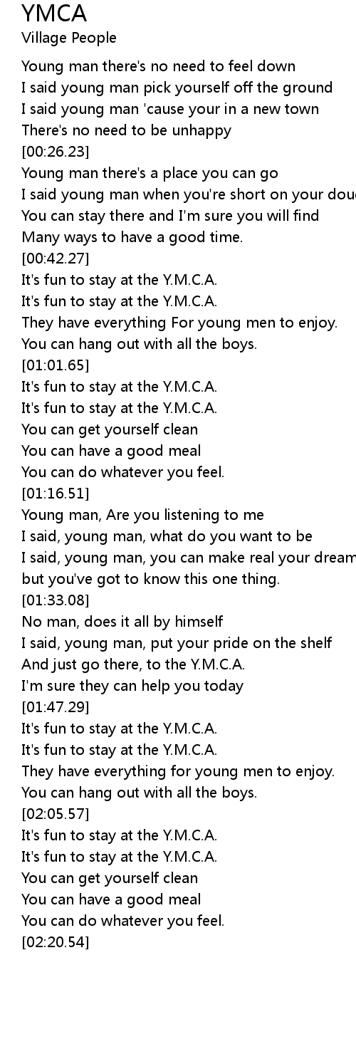 And just go there, to the Y.M.C.A. |