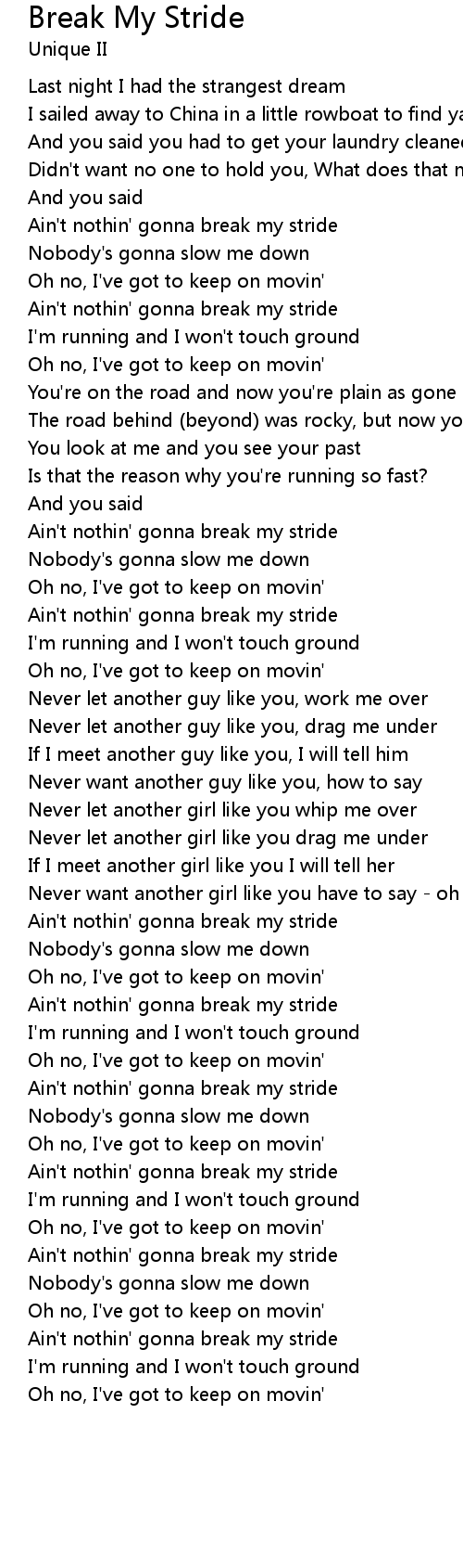 Ain't nothin' gonna break my stride |