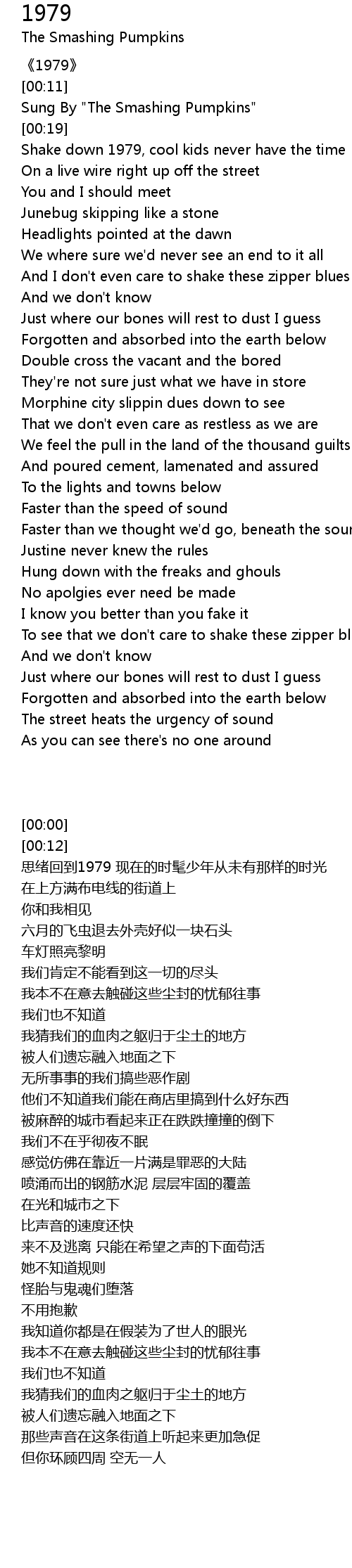 | [00:20] | 思绪回到1979 现在的时髦少年从未有那样的时光 |