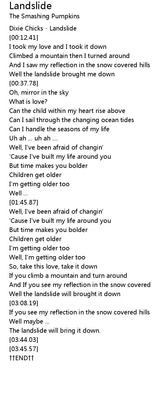 | [00:25.91] | And I saw my reflection in the snow covered hills |