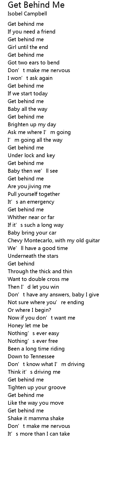 | 歌曲 | Get Behind Me |