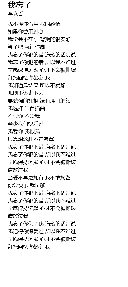| [03:14.36] | 我忘了你犯的错 所以我不难过 |