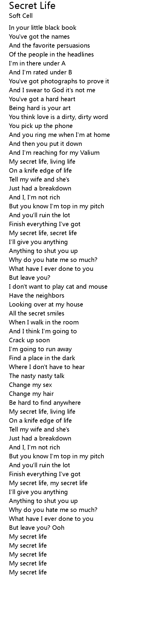 My secret life, secret life |