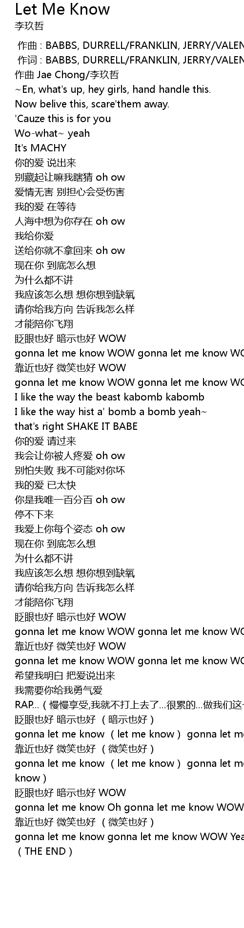 | [03:05.74] | gonna let me know (let me know) gonna let me know WOW Ohhoo~ |
