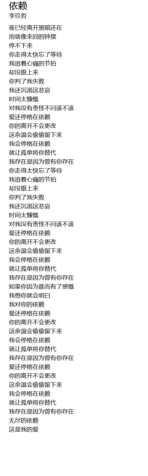 | [02:21.84] | wǒ duì nǐ de yī lài |