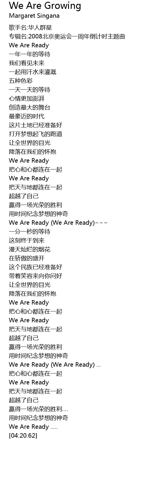 | [03:32.91] | We Are Ready We Are Ready ... |
