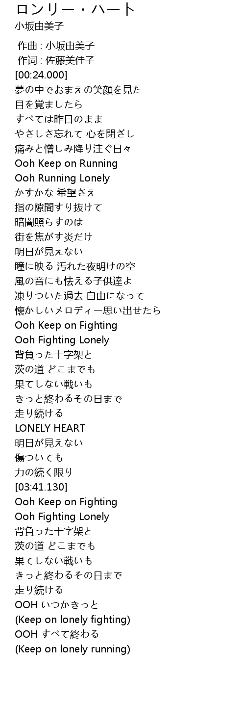 | [00:55.000] | やさしさ忘れて 心を閉ざし |