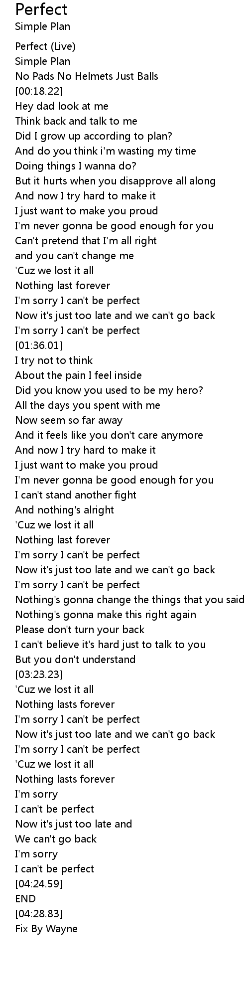 I'm sorry I can't be perfect |