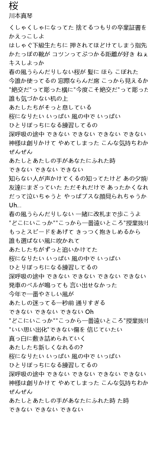 | 桜になりたい いっぱい 風の中で いっぱい ひとりぼっちになる練習してるの | |