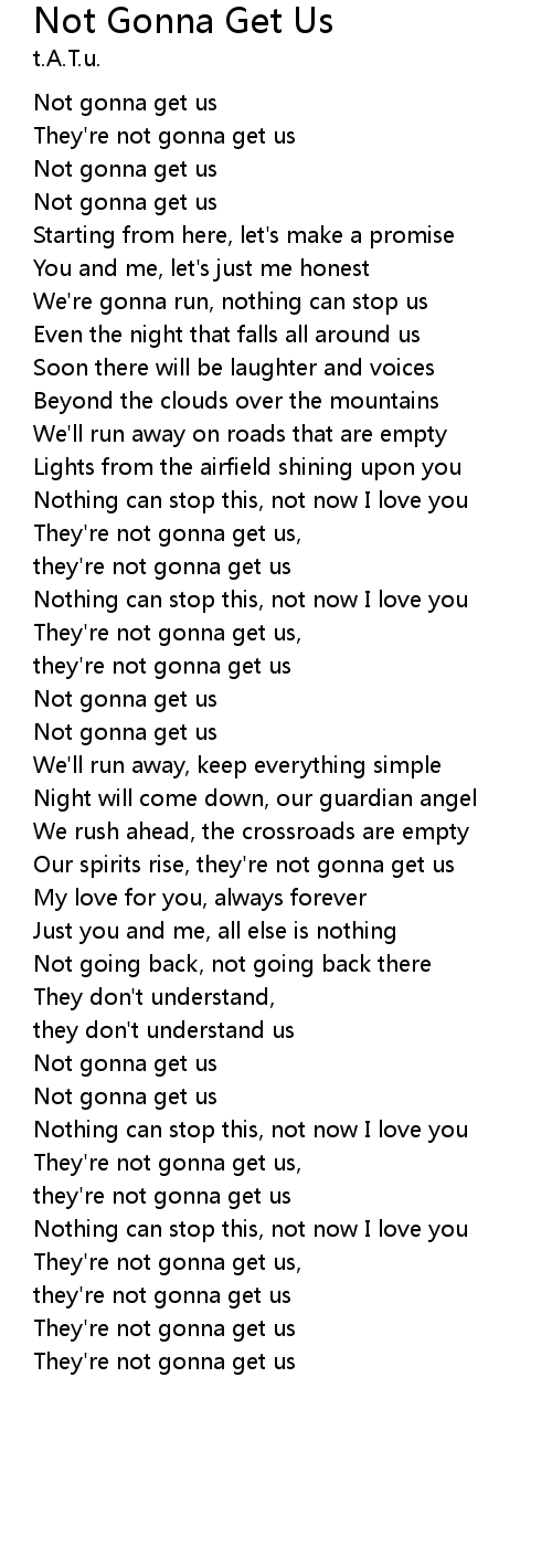 They're not gonna get us, |