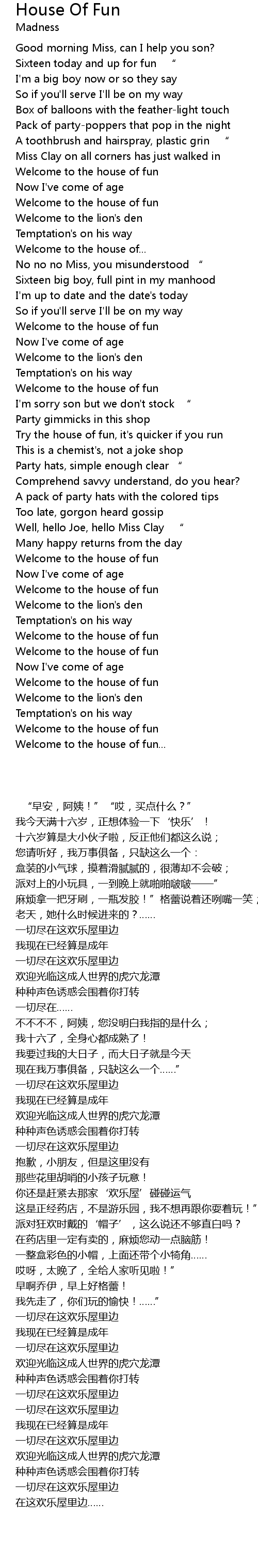 | [01:43.51] | Try the house of fun, it' s quicker if you run |