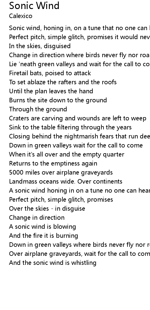And the sonic wind is whistling |