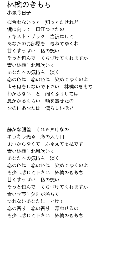 | 恋の色に 恋の色に 染めてゆくのよ | |