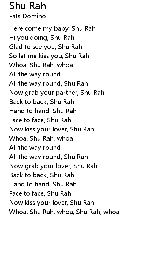 Whoa, Shu Rah, whoa, Shu Rah, whoa |