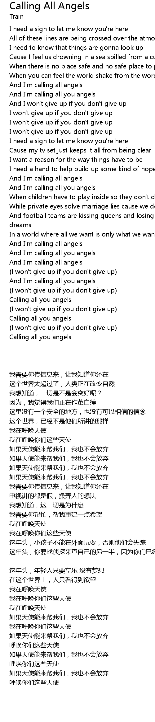 歌曲 Calling All Angels