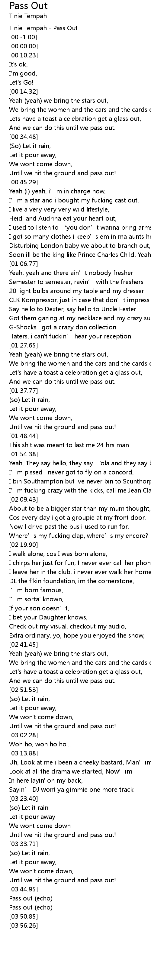 | [00:-2.00] | Tinie Tempah Pass Out |