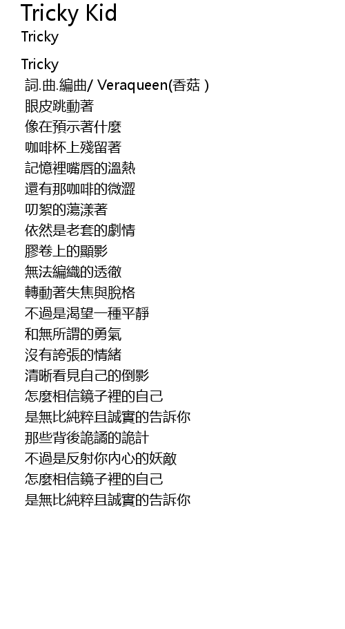| 歌曲 | Tricky Kid |