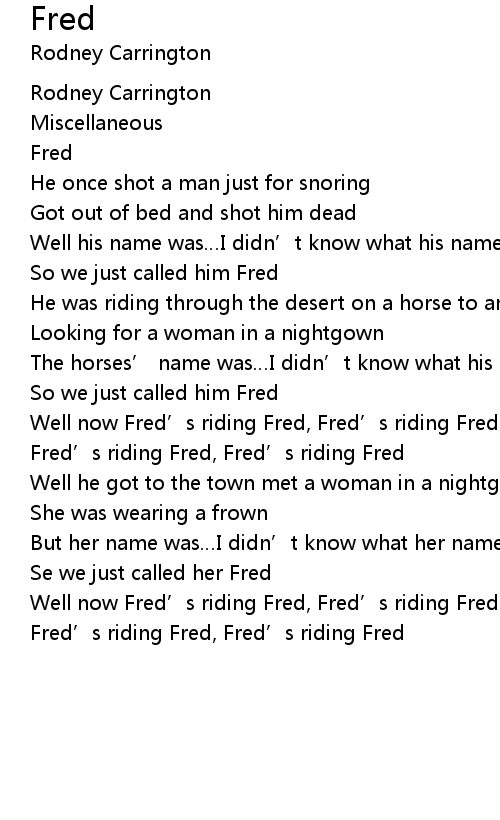 | Well now Fred’s riding Fred, Fred’s riding Fred, Fred’s riding Fred | |