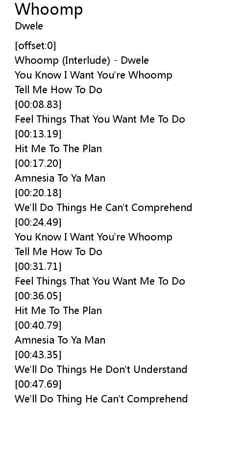 | [00:00.40] | Whoomp (Interlude) - Dwele |