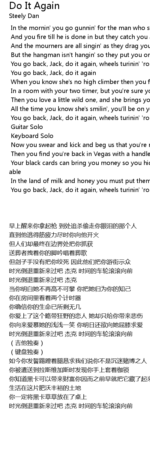 You go back, Jack, do it again, wheels turinin' 'round and 'round |