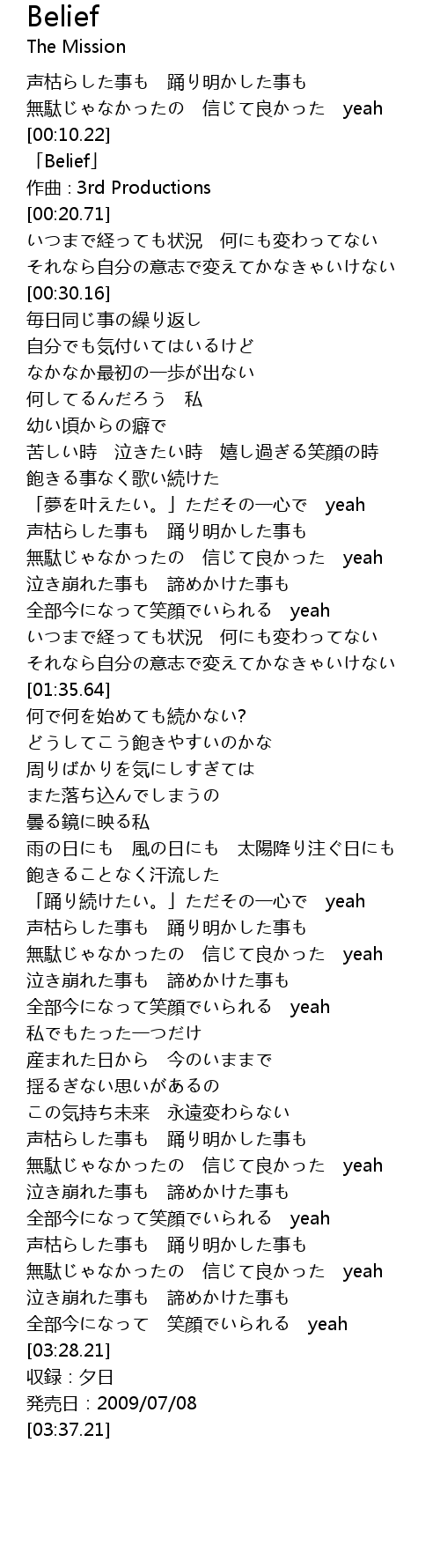 | [00:12.71] | 「Belief」 |